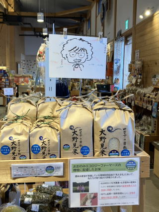 おおのみエコロジーファーマーズエコロジーファーマーズが栽培して販売する米の商品には「みえるらべる」が店舗されています。 また、清水園の濁酒など米を使った製品に「みえるらべる」が添付されています。