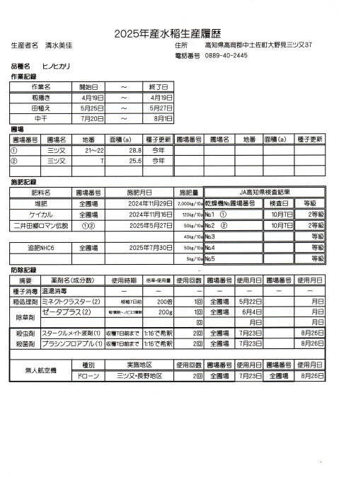 特別栽培米の産地・品種・年産表示の根拠資料として2024年産米から水稲生産履歴を閲覧頂けるようにしました。